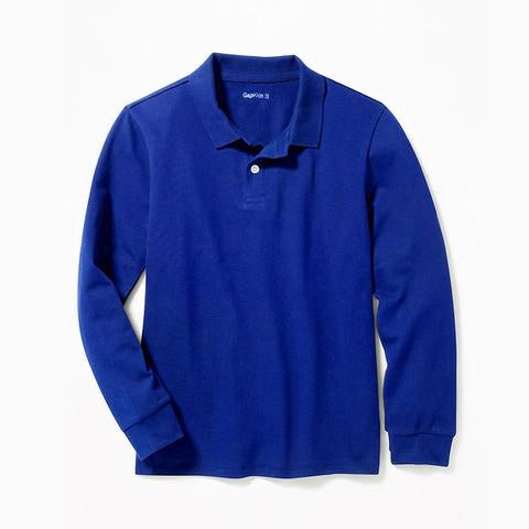 BOY’S FULL SLEEVE PIQUE POLO|GAP-D-BLUE- (4Y-16Y)