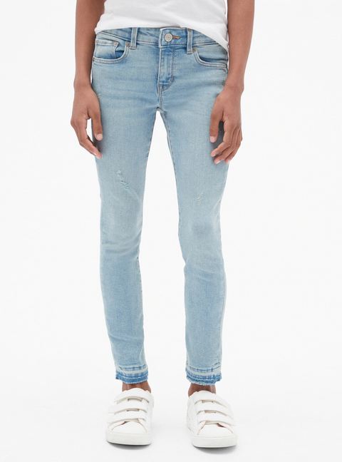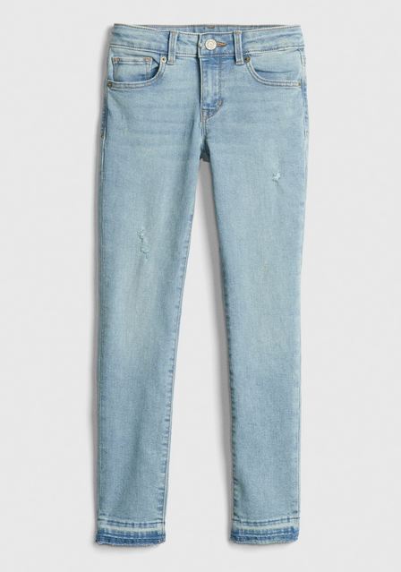 - Button at center front (sizes 4-8 have a hook & bar closure beneath faux snap for easy on and off), zip fly.
