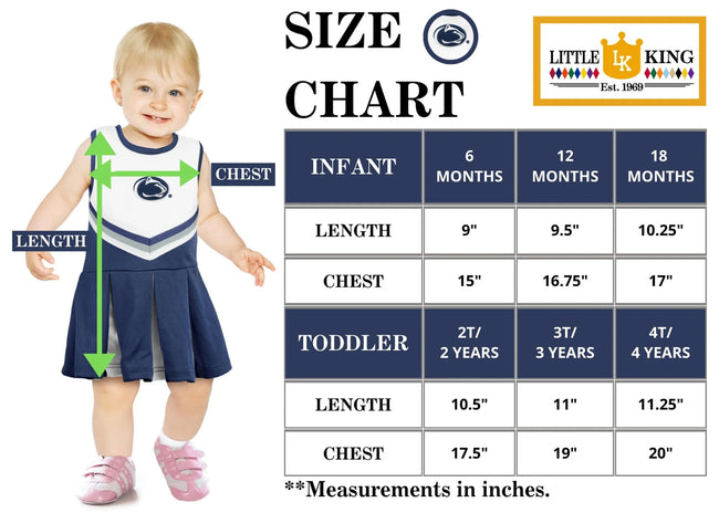 Give your little girl's wardrobe an extra boost of fandom that she'll love to show off this season. This stunning Cheer set from Little King is a great way to revitalize her wardrobe with a push of team flair. The comfortable design and Team graphics of this dress will easily make it stand out in her closet as her new favorite! Made of 100% polyester for durability and a perfect fit. All of our products are Officially Licensed.