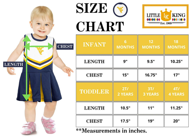 Give your little girl's wardrobe an extra boost of fandom that she'll love to show off this season. This stunning Cheer set from Little King is a great way to revitalize her wardrobe with a push of team flair. The comfortable design and Team graphics of this dress will easily make it stand out in her closet as her new favorite! Made of 100% polyester for durability and a perfect fit. All of our products are Officially Licensed.