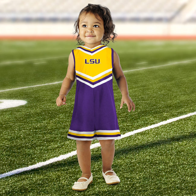 Give your little girl's wardrobe an extra boost of fandom that she'll love to show off this season. This stunning Cheer set from Little King is a great way to revitalize her wardrobe with a push of team flair. The comfortable design and Team graphics of this dress will easily make it stand out in her closet as her new favorite! Made of 100% polyester for durability and a perfect fit. All of our products are Officially Licensed.