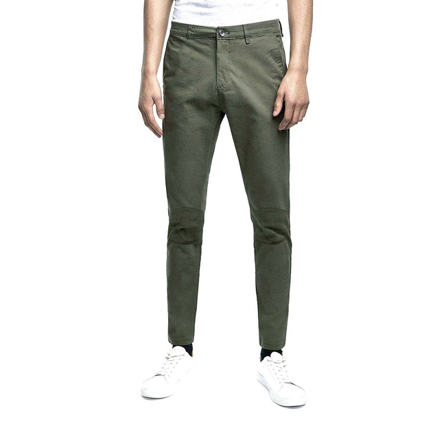 - MEN'S OLIVE 'SKINNY FIT' KNEE PATCHED STRETCH CHINO|ZR