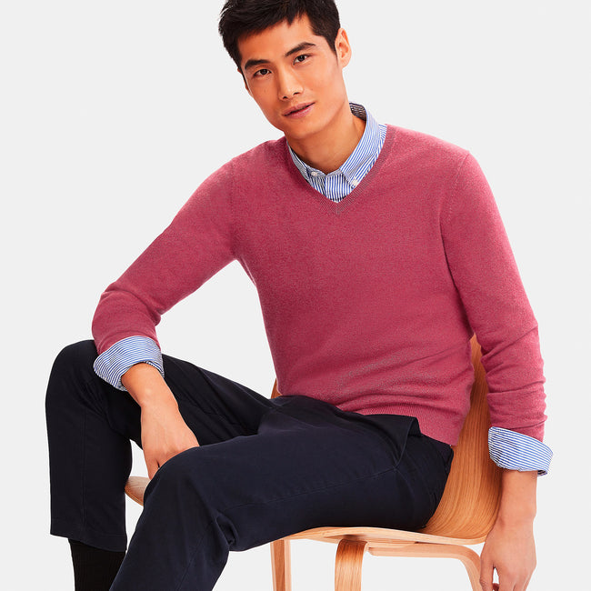 V-neck looks elegant alone or with a shirt.