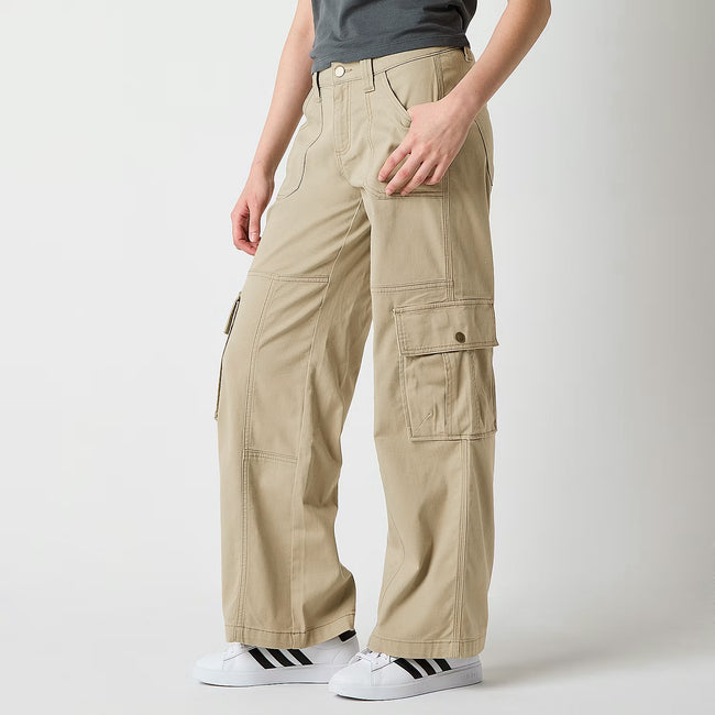 Bring Y2K energy to your rotation with these Arizona Jean Co. cargo pants for women and juniors. Made from soft cotton-blend twill with a baggy fit, they feature a low-rise waist, a wide-leg silhouette, and plenty of utility pockets.